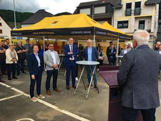 Der Dernauer Ortsbürgermeister Fred Sebastian eröffnete die Veranstaltung "Spatenstich zum Aufbau der Weinbaubrücke in Dernau" mit einer launigen Begrüßungsrede.