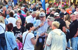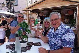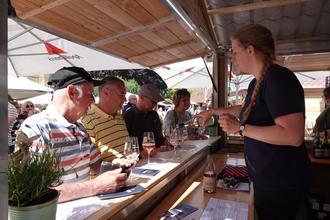 Wie es sich für einen Weinmarkt gehört, wurden an vielen Ständen nicht nur die Schnelldreher angeboten. So manch edler Tropfen war ebenfalls im Angebot und wurde gerne verkostet, wenn auch eher im Glas als gleich in der ganzen Flasche. Beim Weingut Kriechel etwa gab es den 2020er Kräuterberg Goldkapsel Spätburgunder trocken für acht Euro im Glas, die Flasche für 48 Euro. Und die Winzergenossenschaft Mayschoß/Altenahr wartete mit einem trockenen Spätburgunder „Alte Lay“ für 33 Euro die Flasche auf. „Da fragen die Gäste auch nach, nicht nur tagsüber. Ich bin erstaunt, wieviel Rotwein an den Abenden nachgefragt wurden, auch bei der Oldie-Party am Samstag“, freute sich Ines Hoffmann über den Wandel des Publikums.