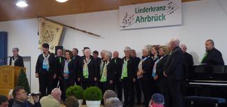 Eröffnet wurde das Programm durch ein Lied des Gastgebers „Über den Wolken“ von Reinhard Mey, woraufhin sich eine Begrüßungsrede der Vorsitzenden des Vereins Liederkranz Ahrbrück, Rita Löhndorf, anschloss. Nun wurde die Sängerin des Gemischten Chores Liederkranz Ahrbrück 1913, Kornelia Frings, von dem Chorverband Ahrweiler, vertreten durch Werner Wolf, für 40 Jahre Mitgliedschaft in diesem Chor geehrt. Sie ist auch Mitglied im Vorstand als Schriftführerin.
