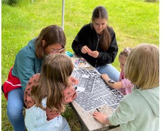 Kinder freuen sich über Glitzertattoos auf der Eifelhütte.