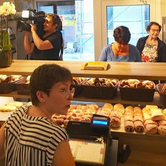 Neben den ersten Kundinnen war auch das Fernsehen in Gestalt des Südwest Fernsehens dabei.