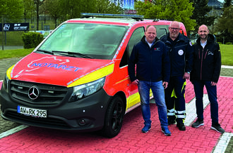 Der Leiter des Nürburgring Medical Centers Armin Link stellte das neue NEF dem Geschäftsführer der Nürburgring Betreibergesellschaft Ingo Böder und dem Kreisgeschäftsführer des DRK-Kreisverbands Ahrweiler e.V. Ulrich Bergmann vor. Das mit Allrad ausgestattete Einsatzfahrzeug verfügt über eine hochmoderne notfallmedizinische Ausstattung. Hierzu gehören unter anderem auch eine mechanische Reanimationshilfe und ein mobiles, hochauflösendes Ultraschallgerät. Außerdem verfügt das NEF über einen speziellen E-Rettungssatz. Dieser schützt die Einsatzkräfte bei Unfällen mit Elektro-Fahrzeugen und ermöglicht eine adäquate Versorgung von Patienten, die mit einem solchen Fahrzeug verunglücken. Das neue NEF ist am Medical Center des Nürburgrings täglich von Mitte März bis Mitte November stationiert und kann im Notfall in diesem Zeitraum auch durch die Integrierte Leitstelle in Koblenz zu Einsätzen im öffentlichen Rettungsdienst in der Region alarmiert werden, wenn das NEF der Rettungswache Adenau im Einsatz und nicht verfügbar ist. „Mit dem Standort am Nürburgring und den vielen Investitionen in den vergangenen Jahren leisten wir gemeinsam einen wichtigen Beitrag zur medizinischen Versorgung am Nürburgring und für alle Bürgerinnen und Bürger im Adenauer Land“, erklärt DRK-Kreisgeschäftsführer Ulrich Bergmann. Insbesondere in Zeiten, in denen die medizinische Versorgung auf dem Land vor immer neue Herausforderungen gestellt werde und teilweise wegbreche, sei das Nürburgring Medical Center eine feste medizinische Stütze der Region, zumal das Team des modernen Rennstrecken-Krankenhauses das ganze Jahr im Einsatz sei. „Wir sind froh, dass wir mit dem DRK-Kreisverband Ahrweiler einen solch starken Partner an unserer Seite wissen. Das neue Notarzteinsatzfahrzeug ist eine starke Ergänzung des hochmodernen Equipments des DRK-Medical Service Nürburgring“, so Ring-Geschäftsführer Ingo Böder.