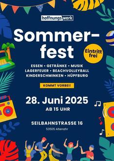 ALTENAHR. Der Hoffnungswerk e. V. lädt alle Bewohner:innen des Ahrtals ganz herzlich zum diesjährigen Sommerfest am 28.06.2025 ein. In gemütlicher Atmosphäre wird sich getroffen, der Abend genossen und gemeinsam Spaß gehabt.