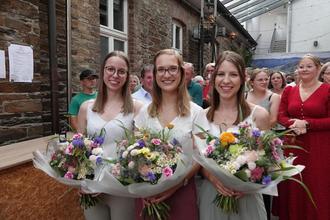 Der designierten Weinkönigin zu Seite stehen die ebenfalls 24-jährige Architektin Anne-Sophie Kastenholz sowie die 23-jährige Rechtsanwaltsfachangestellte Julia Wollersheim. Was alle drei verbindet, ist das Hobby des Funkentanzes. Ab Samstag, 23. September, werden sie offizielle Weinmajestätinnen in Dernau sein.