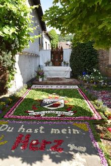 HÖNNINGEN. Die Messe und Prozession zu Fronleichnam fand in diesem Jahr am vergangenen Sonntag statt und wurde von der Blaskapelle Hönningen mitgestaltet. Pfarrer Monsignore Schumacher zelebrierte die Messe in der Pfarrkirche und im Anschluss fand die Prozession statt. Aufgrund der extrem heißen Witterung beschränkte man sich auf den Altar im Dorf, der auch in diesem Jahr kunstvoll gestaltet war. Anlässlich der Papstwahl am 08.05.2025 wurde das aktuelle päpstliche Wappen mit Texten und einem symbolischen Kamin für das Konklave sowohl bildlich als auch optisch dargestellt. Ein besonderer Dank gilt allen Beteiligten, die diesen Tag feierlich mitgestaltet haben und der Kirche in der heutigen Zeit noch Raum und Gesicht geben.