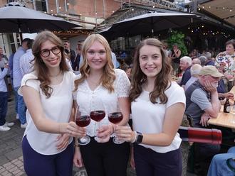 In Dernau wurde das Geheimnis gelüftet, wer ab Winzerfest die Ämter von Weinkönigin und Weinprinzessinnen innehaben wird. Beim Äselsklaaf wurden Weinkönigin Carla Poppelreuter (M.) mit ihren Prinzessinnen Luisa Bertram (l.) und Anna Thiel vorgestellt.