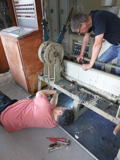 Sven Peterson (r.) unterstützt bei der Demontage der Riegelhebel.