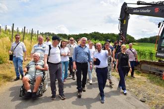 Ganz anders dann das Programm am Mittag. Bei brütender Hitze machten sich Steinmeier, seine Gattin und Landrätin Cornelia Weigand auf den Rotweinwanderweg auf. Hier traf der Bundespräsident Ahrtaler und Touristen und suchte bei einer kurzen Wanderung in Richtung Marienthal immer wieder das Gespräch mit den Mitwandernden. „Wir dürfen und wir werden die Menschen an der Ahr nicht vergessen“, so das Credo seines vierten Besuchs.