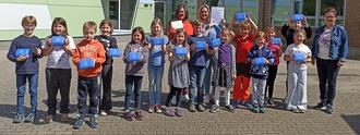 Die Kinder der Klasse 2b der GS Kempenich und ihre Klassenleiterin Judith Saalmann (re) freuen sich über den Gewinn.