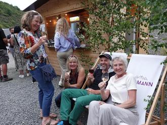 Anlass für die Krönung war der Altenahrer Weinsommer, der einmal mehr auf einem hübsch hergerichteten Teil des Seilbahnparkplatzes gefeiert wurde. Zum 20. Mal fand dieses Fest am Wochenende statt. Es gilt in erster Linie als Feier für die Bevölkerung, aber natürlich waren auch Urlauber oder Tagestouristen unter den Besuchern zu finden. Sogar von der Mosel war eine feiernde Gruppe ins Ahrtal gekommen und bekundete einmal mehr die Solidarität mit der flutbetroffenen Ahrgemeinde. Aber es waren auch jede Menge gekrönte Häupter anwesend, denn traditionell wohnen die Weinköniginnen und -könige des Tals einer jeden Proklamation bei. Ahrweinkönig Felix I. übergab vor der Ernennungsprozedur der scheidenden Königin Jana Ludwig zur Erinnerung an deren Regentschaft eine Collage mit den schönsten Bildern der Weinrepräsentanten.