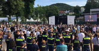 Retterinnen und Retter, Helferinnen und Helfer und Betroffene - sie alle fanden am Donnerstag im Kurpark zusammen