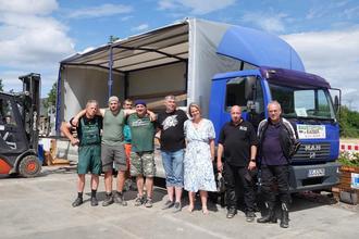 Abschied von der Grafschaft für Wilhelm Hartmann (4.v.r.) und sein Team. Baustoffzeltleiter „Kaiser“ wollte den letzten Tag vor Ort nicht erleben.