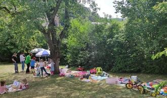 ALTENAHR. Zum Kinderdeckenflohmarkt luden am ersten Ferienwochenende die Organisatorinnen des Altenahrer Familientreffs Manuela Kremer-Breuer (Gemeindereferentin), Stefanie Marhöfer und Anna van den Boom alle Interessierten in den schattigen Pfarrgarten ein. Die kleinen Verkäufer arrangierten ihre Spielsachen, Bücher und Kuscheltiere auf den Decken und bewarben ihre Waren. Vor allem die kleineren Kinder investierten ihre gerade verdienten Euros meist direkt an einer der benachbarten Decken. Das Tauschen von Büchern und Spielsachen war ebenfalls sehr beliebt. Als die Motivation der Kinder auf den Decken nachließ wurden wieder die allseits beliebten großen Legosteine zum Bauen herausgeholt. Auch das Angebot an Obst, Eis und erfrischenden Getränken wurde von allen begeistert angenommen. Lachende Kinder und zufriedene Eltern – damit wurde das Ziel des Familientreffs wieder einmal erreicht.