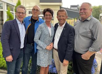 Nach der Begrüßung durch Günther Uhl und Gereon Haumann gab es ein Grillbuffet vom Feinsten. Es wurde viel diskutiert über die Erlebnisse nach der Flut, über die sichtbaren Verbesserungen des Wiederaufbaus, die erfolgversprechenden Umsätze der Betriebe die schon wieder geöffnet haben, aber auch die Hemmnisse durch überlange Bearbeitung von Anträgen durch die Behörden. Thematisiert wurde auch die Forderung, dass die Landesregierung umgehend eine Verordnung erläßt, die die vorübergehende Abweichung von Bestimmungen des Baurechts im Flutgebiet zulässt. Einmütigkeit herrschte, dass trotz aller Fortschritte behördliche Genehmigungen viel zu lange dauern und die Ungewissheit bei Hochwasserschutz viele Entscheidungen zum Risiko machen. Zahlreiche Gastgeber, deren Betriebe noch nicht fertiggestellt sind, sind ungeduldig und freuen sich darauf, bald wieder Gäste zu begrüßen. Denn die Perspektiven im Ahrtal sind sehr vielversprechend.