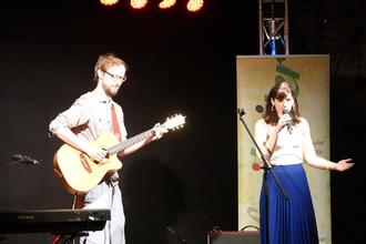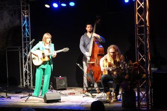 Musikalisch ebenso aufgedreht wie Simon & Info sorgten die Französin Marion und ihr polnischer Partner Sobo aus Polen für den musikalischen Abschluss des Festivals. Mitgebracht hatten sie Stefan Burger am Kontrabass. Das Trio sprühte voller musikalischer Lebensfreunde und präsentierte das aktuelle Album „Histoires.“ Dass sie viele Genres beherrschen, zeigten sie dem Publikum mit jedem ihrer Stücke, mal in französischer, mal in deutscher Sprache vorgetragen. Immer war der Schalk in ihren Texten zu spüren, wie dem Publikum beim „Die Badewanne voller Bier“ besonders deutlich wurde. Es ging um die berühmt berüchtigten Studentenpartys, wobei sich Marion bitterlich beklagte, dass die mit Anfang 30 dazu keine Einladungen mehr erhalte. Ihrem musikalischen Fokus näherte sich das Quartett mit jedem gespielten Stück. Sie sind große Verehrer des „Hot Club De France“ und damit des Gipsy Jazz, den einst Musiker wie Django Reinhardt kreierten.