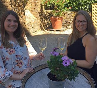 Majestätischer Campingbesuch in der Klosterruine Marienthal: Die beiden Deutschen Weinprinzessinnen Saskia Teucke (l.) und Linda Trarbach ließen sich den Wein schmecken.