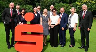 Der Vorstand der Kreissparkasse Ahrweiler (l. u. r.) gratulierte gemeinsam mit dem Personalrat (2. v. l.) Kerstin Reese, Bianca Fuhrmann, Sandra Kasper, Torsten Hümmerich, Edith Radermacher, Christoph Frings und Esther Linden zu ihren 25- und 40-jährigen Dienstjubiläen.