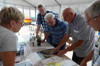 Der Walporzheimer Ortsbeirat und Stadtrat Werner Schüller (2.v.l.) ließen sich von Ortsvorsteher Gregor Sebastian (2.v.r.) die verschiedenen Varianten erläutern.