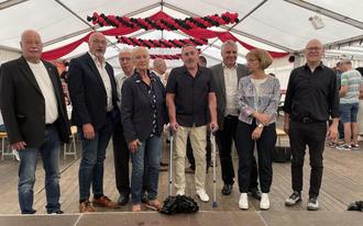 1.Kreisvorsitzender Fußballverband Rheinland Dieter Sesterheim, 1. Beigeordnete Verbandsgemeinde Jürgen Schwarzmann, 1. Kreisvorsitzende Sportbund Fritz Lanenhorst, Präsidentin des Sportbundes Monika Sauer, 1. Vorsitzender ABK 54 Franz - Josef Christ, Ortsbürgermeister Guido Galle, Kreisbeigeordnete Sabine Glasner, Geschäftsführer ABK 54 Andreas Hupperich (v.l.)