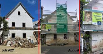 Das ehemalige Bethaus in Dernau ist durch die Flut schwer beschädigt worden. Jetzt wird es mit jugendlicher Unterstützung wieder aufgebaut.
