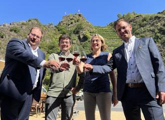 Die Führungsriege der Winzergenossenschaft Mayschoß Altenahr (v.l.) Mirco Burkardt, Vertriebsvorstand, Jan Hallerbach, Kellermeister, Astrid Rickert, Kellermeisterin, Vorstandsvorsitzender Dirk Stephan.