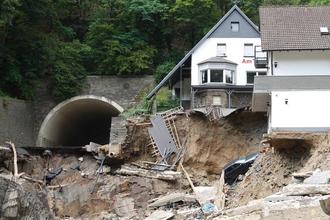 In Altenahr hatte die Flut am Abend den 14. Juli und in der darauffolgenden Nacht den aus dem Jahr 1834 stammenden Engelsley-Tunnel fast bis unter die Decke geflutet. Der reißende Strom zerstörte in der Folge Straße und Unterbau auf beiden Tunnelseiten. Bilder des rund zehn Meter tiefen Kraters auf der Ostseite des Altenahrer Tunnels mit unterspülten Häusern auf beiden Seiten gingen um die ganze Welt. Noch nie hatte das Wasser im Tunnel auch nur ansatzweise eine solche Höhe erreicht, auch wenn die Ahr bei großen Hochwasserlagen immer wieder die „Abkürzung“ durch den Tunnel nimmt. Allerdings waren bei der Hochwasserkatastrophe im Jahr 1910 ähnliche Straßenschäden entstanden und große Teile des befestigten Wegs weggespült worden, wie Bilder aus dieser Zeit zeigen.