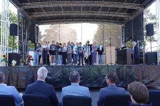 Musikalisch gratulierte der Schulchor zum Jubiläum.
