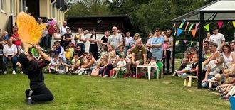 KALENBORN.OC. Am Samstag, den 16. September, feierte der Kommunale Kindergarten „DIE SCHATZINSEL" sein 30-jähriges Bestehen. Die Organisator*innen rund um Leiterin Ivonne Preuss hatten für die großen und kleinen Gäste ein spektakuläres Rahmenprogramm zusammengestellt, bei dem alle auf ihre Kosten kamen. Großen Anklang fand die Aufführung der Kindergartenkinder, darüber hinaus versuchten sich die Kleinen beim Mitmachzirkus, bewunderten den Feuerspucker und freuten sich über Luftballontiere, Popcorn und Glitzertattoos. Leckereien aus der Frittenbude und vom Grill sorgen für die entsprechende Verköstigung. Ortsbürgermeisterin Annette Winnen freute sich, Verbandsgemeindebürgermeister Dominik Gieler als Gast begrüßen zu dürfen. Ihr besonderer Dank galt dem Team der Kindertagesstätte und den direkten Nachbarn des Kindergartens. Erzieherin Diana Rennesland gratulierte Winnen zum 20-jährigen Dienstjubiläum, Ute Schmitten-Zimmermann und Renate Naus feierten ihr 10-jähriges Dienstjubiläum. Jessica Fröhner, Vorsitzende des Elternausschusses, überreichte dem Kindergartenteam im Namen der Ortsgemeinde Kalenborn und des Elternausschusses einen Gutschein für ein Teamevent im Escape-Room Bonn-Endenich.