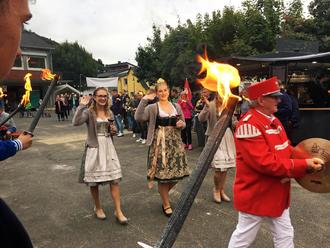 Einzug der Dernauer Regentinnen am Freitagabend auf den "neuen" Festplatz, den Schulhof