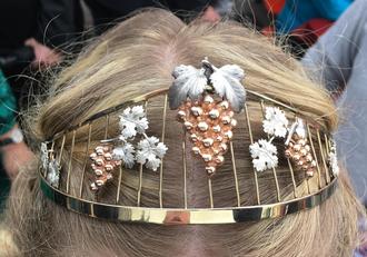 Eine Besonderheit in diesem Jahr: Weinkönigin Ronja ist die erste Trägerin der neuen Krone, das Markenzeichen einer jeden Dernauer Ortsweinkönigin. Marc Stich von Juwelier Reidenbach in Bad Neuenahr hat die neue Krone gefertigt. Sie ist aus 925/- Silber gearbeitet und entsprechend gehärtet, damit sie stabil, aber auch sehr leicht ist. Im Ganzen wiegt sie nur 69 Gramm. Marc Stich: „Die Kronen vorher waren so schwer, dass die meisten Regentinnen nach spätestens einer halben Stunde Kopfweh hatten. Das passiert mit dieser neuen Krone nicht mehr.“