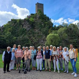 Mit dem Bus ging es zuerst nach Manderscheid. Dort schaute sich die Gruppe auf der Niederburg die Turnierwiese an der Lieser an. Junker Georg erzählte ihnen einiges über die Geschichte der Burg und gab Sagen und Legenden zum Besten. Im Anschluss konnten alle an der Heidsmühle bei Kaffee und Kuchen die Natur genießen und ins Plaudern kommen. Dankbar für ein paar schöne gemeinsame Stunden des Austausches und der Begegnungen ging es im Anschluss wieder Richtung Adenau. Beim Abschied wünschten sich alle ein baldiges Wiedersehen. Dieser Ausflug war ein Gemeinschaftsangebot der Pfarreingemeinschaft Adenauer Land, des Generationenbüros der Verbandsgemeinde Adenau und der Gemeindeschwesterplus.