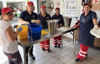 Ehrenamtliche des Roten Kreuz kochen 200 Mahlzeiten für Teilnehmende der Waldbrandübung