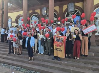 Annabell Stodden (vorne) mit ihren Unterstützerinnen und Unterstützern beim Vorentscheid in Neustadt an der Weinstraße.