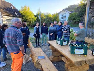 AHRBRÜCK/PLITTERSDORF/LÜCKERT. Die Helferinitiative Leitersdorf - Lückert hatte Bürgermeister Radermacher und seine Beigeordneten am Donnerstag zu einem Treffen gebeten. Die Initiative hatte sich schon einige Tage nach der Flut im vergangenen Jahr um die Vorsitzende des DorfvereinsPlittersdorf, Katja Hartig, gebildet. Die Helfer aus Lückert bei Hennef/Sieg waren damals in die Eifel gekommen, um zusammen mit Bewohnern von Plittersdorf bei der Versorgung und beim Beseitigen der Schäden im besonders betroffenen Ortsteil Brück zu unterstützen. Dabei entstanden zahlreiche persönliche Kontakte, die bis heute bestehen. Nachdem die Hilfe in der ersten Not abgeschlossen war, habe man sich überlegt, was man nun für die betroffenen Menschen in Ahrbrück tun könne. Man wollte ein positives Zeichen setzen, dass es weitergehe, so Katja Hartig. Die Initiative hatte sich dann darauf verständigt eine Sitzgruppe zu bauen, die ein Ort für das Zusammentreffen der Betroffenen sein soll.