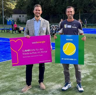 Auch Günter Bleffert, erster Vorsitzender des SV Altenahr e.V., ist begeistert und lobte bei der Eröffnungsfeier im Oktober das außerordentliche Engagement der zahlreichen Förderer: „Dank der finanziellen Hilfe können auf dem ehemaligen Fußballplatz in Ahrbrück zwei Kunstrasenplätze genutzt werden, die im Hinblick auf das Weiterbestehen unseres Tennisvereins enorm wichtig sind und lange ersehnt wurden. Die Finanzierung der neuen Sportstätte gelang ohne öffentliche Gelder. Erfreulich ist die Beteiligung einzelner Unternehmen und deren Engagement. So unterstützte uns Westenergie mit der Aktion #StAHRthilfe, um das kulturelle und gemeinschaftliche Leben im Ahrtal zu fördern.“