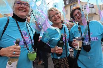 Laut dem Schriftzug auf ihrem T-Shirt sind das die "Wein-Quallen" Ihr Motto: "Hier möchte ich gern eine Qualle sein dann könnte ich tauchen in Dernauer Wein."