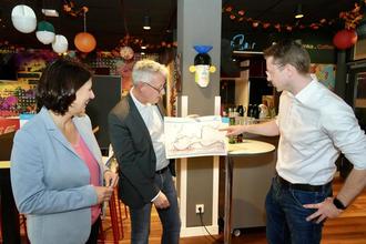 Stefan Schmitt erläutert Ministerin Schmitt und Christian Senk die aktuelle Situation im Bereich der "Bunten Kuh"