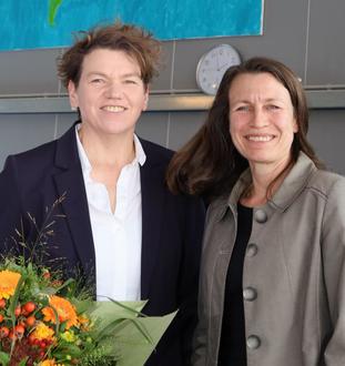 Landrätin Cornelia Weigand gemeinsam mit Schulleiterin Nina Pfeil während der Feier zur Amtseinführung.