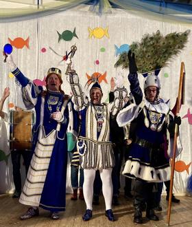 BERG-FREISHEIM.OC. Gut gelaunt ging es her, als am Freitagabend, 4. November, zahlreiche Jecken aus nah und fern in die Freisheimer Vischeltalhalle strömten. Moderator Andreas Kessel hieß sie alle pünktlich um 19.11 Uhr im „kleinen Gürzenich der Gemeinde Berg“ willkommen. „Der wichtigste Mann der Gemeinde“, Ortsbürgermeister Erwin Kessel, nahm als ersten Programmpunkt die Abproklamation der seit Session 2014/2015 (!) amtierenden Tollitäten Prinzessin Sibylle und Prinz Patrick, vor. Für ihre Amtszeit, die laut Kessel „nicht ganz so lange, wie die der britischen Queen gedaudert hat“, dankte er im Namen aller Karnevalsbegeisterten von ganzem Herzen. Sichtlich gerührt verabschiedete sich das Prinzenpaar von seinem närrischen Volk, um auf der Bühne Platz für die jüngste Tanzgarde in Freisheim zu machen: Die Minifunken der Prinzengarde begeisterten mit einem Einhorn-Tanz. Ihnen folgten die mittleren Funken der Prinzengarde, die zu Neunt auf die Bühne stürmten. Leider gab es auch im Programm der Freisheimer Prinzen krankheitsbedingte Ausfälle, wodurch die Veranstaltung nun etwas ins Stocken geriet. Zahlreiche Schunkelrunden waren für die angereisten befreundeten Vereine angesagt, bevor es mit den Auftritten weitergehen konnte. Umso spektakulärer war der Einzug des designierten neuen Dreigestirns - Prinz Markus I., Jungfrau Patricia und Bauer Tim – sie brannten ein wahres Feuerwerk ab, als sie die Halle erstürmten. Konfettikanonen en masse, Jubel, Kreischen, Klatschen und Bützche – die drei wurden nicht müde, sich von ihrem Volk feiern zu lassen! „Die Vischeltaler“ begleiteten sie bei ihrem Einzug mit zünftiger Blasmusik. Bei der Proklamation der neuen Tollitäten machte Beigeordneter Gerd Gerres besonders auf das sensationelle Schuhwerk der drei sympathischen und über die Landesgrenzen hinaus bekannten und beliebten Würdenträger aufmerksam. Von ihm erhielten sie auch die zum Regieren nötigen „Werkzeuge“: Schmuckfedern und Zepter für den Prinzen, Dreschflegel und Gemeindeschlüssel für den Bauern sowie einen Spiegel für die Kontrolle von Schönheit und Charme der Jungfrau. Die Antrittsrede von Prinz Markus I. unterstrich seine Authentizität: „Ich werde he keen Spökskes maache!...“ ließ er als erstes verlauten. Er freue sich darauf, mit allen Jecken eine unvergessliche Zeit zu erleben. Jungfrau Patricia ist den meisten bereits als Prinz Patrick der Vorgängertollitäten bekannt und hätte niemals erwartet, „sich einmal selbst zu proklamieren“. Bauer Tim berichtete, dass die Idee zu einem Männerdreigestirn in einer geschmückten Garage entstanden sei und die Schwierigkeit in der Rollenverteilung bestanden habe. Er als Bauer habe als Haustiere lediglich ein paar Eintagsfliegen vorzuweisen. Prinz Markus hingegen habe schon immer davon geträumt, einmal als Prinz in Strumpfhosen im „Sartory von Freisheim“ auf der Bühne zu stehen. Ortsbürgermeister und Beigeordneter nahmen nun die Ordenverteilung vor, bevor der erste große ShowAct des Abends das Publikum in ausgelassene Stimmung versetzte: Die Hafengarde Oberwinter (unter ihnen Max Schwarz aus der Gemeinde Berg) bot eine spektakuläre Tanzdarbietung – Gardetanz vom Feinsten! Nur ungern entließ sie das Publikum nach mehreren Zugaben. Nachdem sich die Menge wieder etwas beruhigt hatte, traten zahlreiche Gratulanten zum Dreigestirn auf die Bühne. Angereist waren Vertreter der Karnevalsfründe Al-Ersch, KG Oberdrees, Damenkomitee Goldene Herzen Oberdrees, Grüne Waldmäuse Kalenborn, Festkomitee Kalenborner Karneval, KG Grün-Gelb Fritzdorf, KG Grün-Weiß Esch, JGV Freisheim, NCR Blau-Gold Rheinbach, KG Queckenberg, KG Morenhoven, Damenkomitee Rotkelchen Morenhoven, Fidele Burgfrauen Wormersdorf, KG Närrischer Schornbusch, KG Effelsberje Jecke, Karnevalsfreunde Merzbach-Neukirchen, GRO-RHEI-KA Prinzengarde Rheinbach, KG Ringener Wendböggele, Prinzengarde Meckenheim und der Prinzenclub Meckenheim. Absolutes Highlight des Abends war der späte Auftritt der Gruppe Schmitz‘ Marie, die „die Halle abrissen“. Nun waren die Jecken nicht mehr zu bremsen und feierten bis zum frühen Morgen. Dreemol vom Hätze Freschem Alaaf!