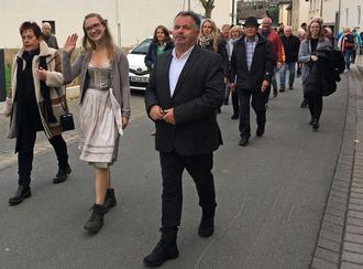 Zur Eröffnung des Martinsmarktes am Samstag drehte Weinprinzessin Laura Nietgen gemeinsam mit Ingrid Näkel-Surges und dem Kreisbeigeordneten Friedhelm Münch und weiteren Ehrengästen eine Runde durch Dernau.