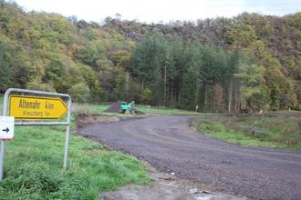 KREUZBERG. Gut sieben Kilometer Landesstraße hatte die Naturkatastrophe vom Juli 2021 zwischen Kirchsahr und dem Altenahrer Ortsteil Kreuzberg im Sahrbachtal, einem Nebenfluss der Ahr, teilweise völlig zerstört. Das Tal war kurz nach der Flut von der Außenwelt abgeschnitten. Jetzt befindet sich der Wiederaufbau sprichwörtlich auf der letzten Meile: Die Fahrbahn wird ab der Einmündung K 31, von und nach Berg, bis zur Ortslage Kreuzberg erneuert.