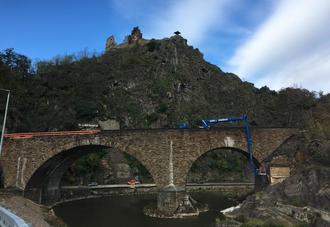 Die imposante Brücke unterhalb der Burgruine Are in Altenahr.