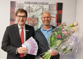 Wolfgang Kaspers (l.) und Paul Kaschinski (r.) bei der Gewinnübergabe.