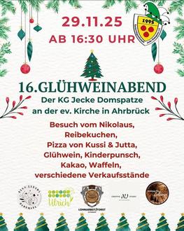 Von 16:30 Uhr bis Open End lädt die KG Jecke Domspatze e. V. rund um die evangelische Kirche zu einem verführerischen Duft aus Zimt, Nelken und fruchtigem Glühwein ein. Besucher erwartet eine Vielfalt an Ständen mit winterlichen Leckereien, kreativen Getränkekreationen und gemütlicher Musik – perfekt, um sich bei kaltem Wetter zu wärmsten Gesprächen zu treffen.