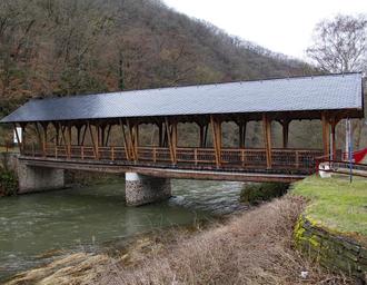 MAYSCHOSS-LAACH. (kan.) Die Anna-Brücke in Laach fiel auf. Und das in vielerlei Hinsicht. Sie war eine Holzbrücke aus dicken Holzstämmen. Ebenso war die Fahrbahn aus Holz. Die Brücke konnte mit bis zu 20 Tonnen belastet werden. Auch die Dachkonstruktion war auch Holz. das Hochwasser von 2021 jedoch wurde ihr zum Verhängnis. Die Flut hatte die Brücke mitgerissen.
