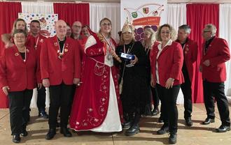 KALENBORN.OC. Das hätte sich in Kalenborn noch vor Kurzem niemand träumen lassen: Mit Prinzessin Alina I. ergriff am Samstag, den 18. November, um 19.11 Uhr eine echte Dernauerin das Zepter der Macht. In der festlich rot-weiß geschmückten Kalenborner Mehrzweckhalle herrschte bereits beste Stimmung, als Jessica Nestrowicz, Präsidentin des FKK Festkomitee Kalenborner Karneval, die Session 2023/2024 eröffnete. „In Kalenborn halten die Frauen das Zepter fest in der Hand“, so Nestrowicz - folge Alina doch den ehemaligen Prinzessinnen Nicole, Jessica und Edith. Als ersten „Gast“ des Abends begrüßte sie Ortsbürgermeisterin Annette Winnen, die unter tosendendem Applaus - bereits mit Zepter, Gemeindekasse und Rathausschlüssel bewaffnet - in die Festhalle einzog. „Sie haben mir gesagt, eine andere Frau greift nach der Macht – Du musst die Gemeindekasse mitbringen!“ Diese sei leider nicht ganz so gut gefüllt, aber für ein Blömsche habe es gerade noch so gereicht, berichtete Winnen, die Alina die Insignien gerne übergab und ihr eine unvergessliche Session mit vielen Höhepunkten und Glücksmomenten wünschte. Die frisch inthronisierte Prinzessin zeigte sich sehr gerührt, dass „ein Mädchen aus dem Ahrtal einmal so herzlich in Kalenborn zur Prinzessin gekürt wird“. Nach vier Jahren Gardetanz in Kalenborn sei sie 2019 in das FKK Festkomitee Kaleborner Karneval eingetreten und habe sich dort gleich gut aufgehoben und angenommen gefühlt. Nachdem ihre Tante Edith bereits Karnevalsprinzessin 2018/2019 und ihr Cousin Lars Prinz im Kinderdreigestirn war, möchte sie nun der Tradition der Familie Riske an der Spitze des Kalenborner Karnevals folgen und stellte ihr diesjähriges Motto „Immer met Hätz un Siel dabei“ vor. Frenetischer Applaus folgte dem ‚drimol vun Hätze Alaaf‘! Mit sensationellen Tänzen der kleinen und mittleren Funken Kalenborn wurde die neue Prinzessin gemeinsam mit ihrer Adjutantin Daniela Winten im Amt begrüßt.