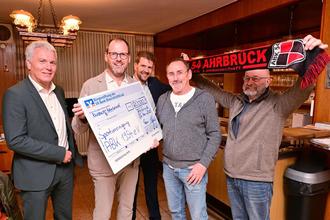 Die symbolische Scheckübergabe fand im Vereinsheim am Sportplatz in Ahrbrück statt. Überreicht wurde der Scheck von Thomas Theisen (Regionalmarktdirektor AhrBrohltal der VR Bank RheinAhrEifel), Jochen Nett (Teamleiter Privatkundenberatung AhrBrohltal der VR Bank RheinAhrEifel) und Markus Schmidt (Private Banking Stiftungsmanager der VR Bank RheinAhrEifel).