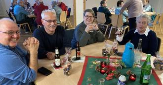 Nach der Stärkung bei Kaffee, Kuchen und Salaten sang man Dienstag gemeinsam mit Gabi Nussbaum und Gitarrenbegleitung von Bettina Mombauer stimmungsvolle Weihnachtslieder und verbrachte einige gesellige Stunden unter dem festlich geschmückten Weihnachtsbaum.