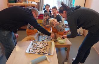 An fünf Vormittagen gesellten sich kleine Gruppen um je zwei Eltern und starteten mit ihrer Weihnachtsbäckerei.