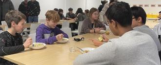 Die Schülerinnen und Schüler freuen sich über die neue Mensa.